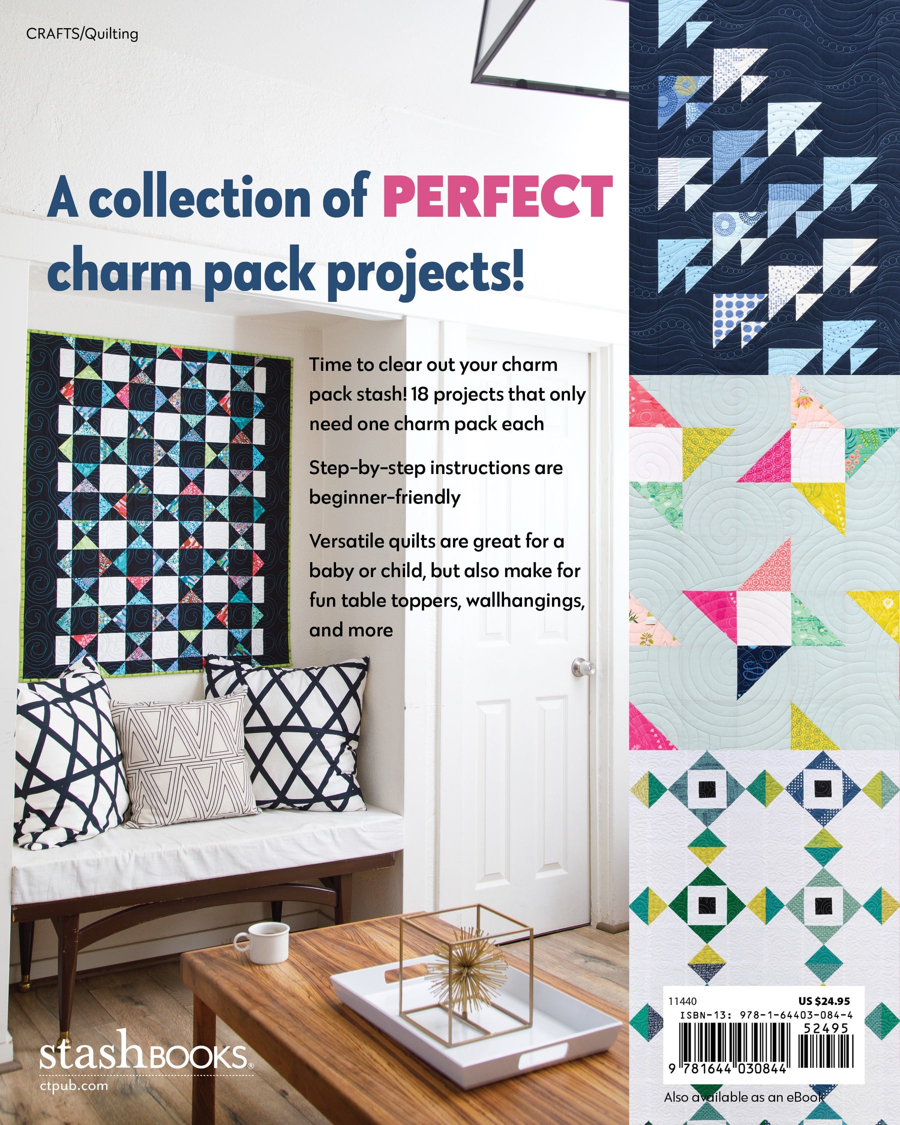 Who can resist a perfectly coordinated and fun-filled fabric charm pack? Now make the most of your growing collection with projects designed with the charm pack lover in mind. Sew colorful and bright quilt projects, each using only one charm pack, one extra fabric, and a background fabric.