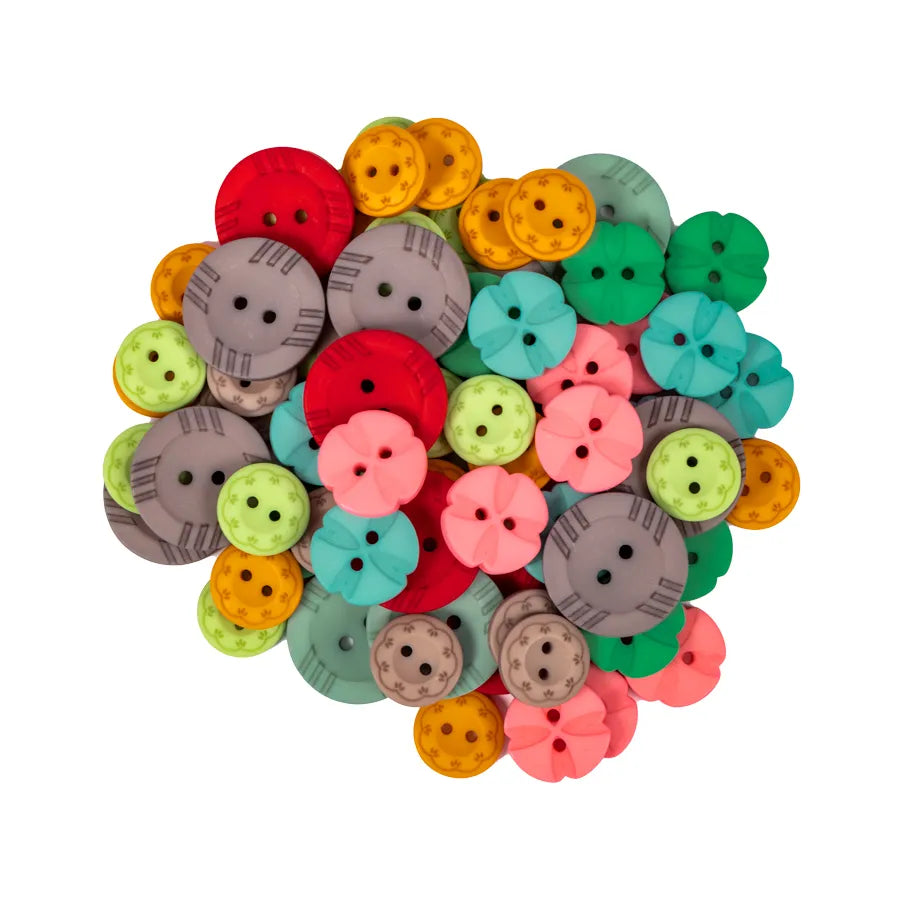 The Wallflower Collection Blue/Thistle Fabric Covered Buttons includes 8 5/8in (16mm) fabric covered buttons. Tilda Fabric's Wallflower collection is designed by Norwegian designer Tone Finnanger. "Wallflower is an ornamental collection loosely inspired by and my somewhat romantic take on design styles popular in the 1960s and 70s." The collection has two distinctive color stories. One is sweet and fresh with vintage reds, greens and pinks with hints of blue and sour yellow. The other is more of a nod to the 1960s and 70s, with caramel, blue, ginger, ochre and thistle tones. The sweet Bellflower blenders complement the main collection perfectly.