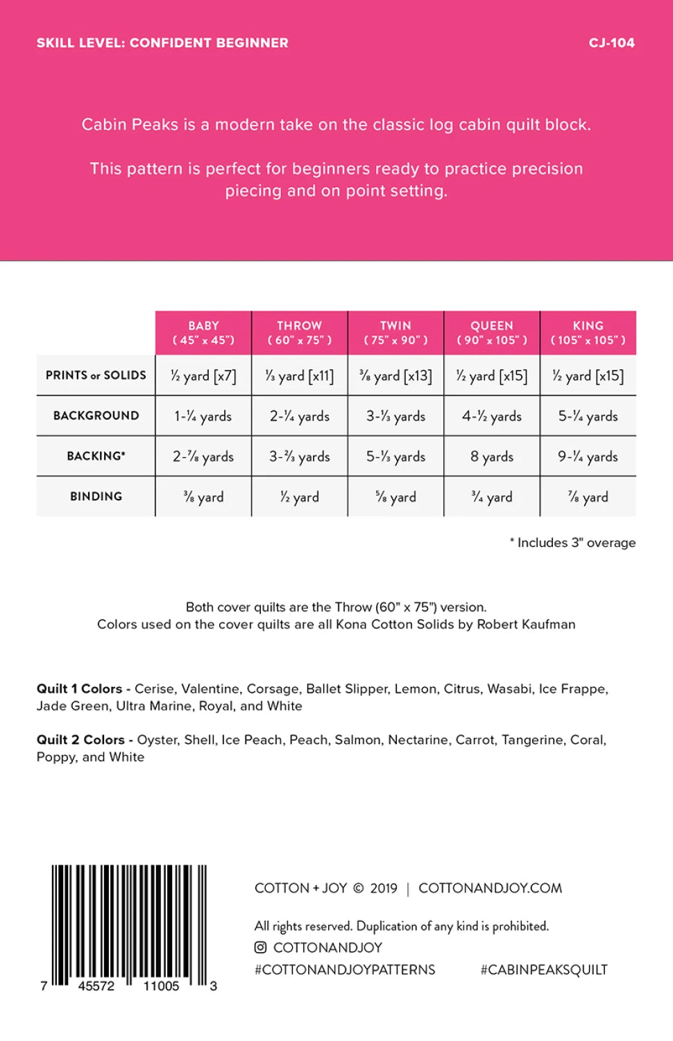 Andes Ode Quilt Pattern - Cotton + Joy Patterns