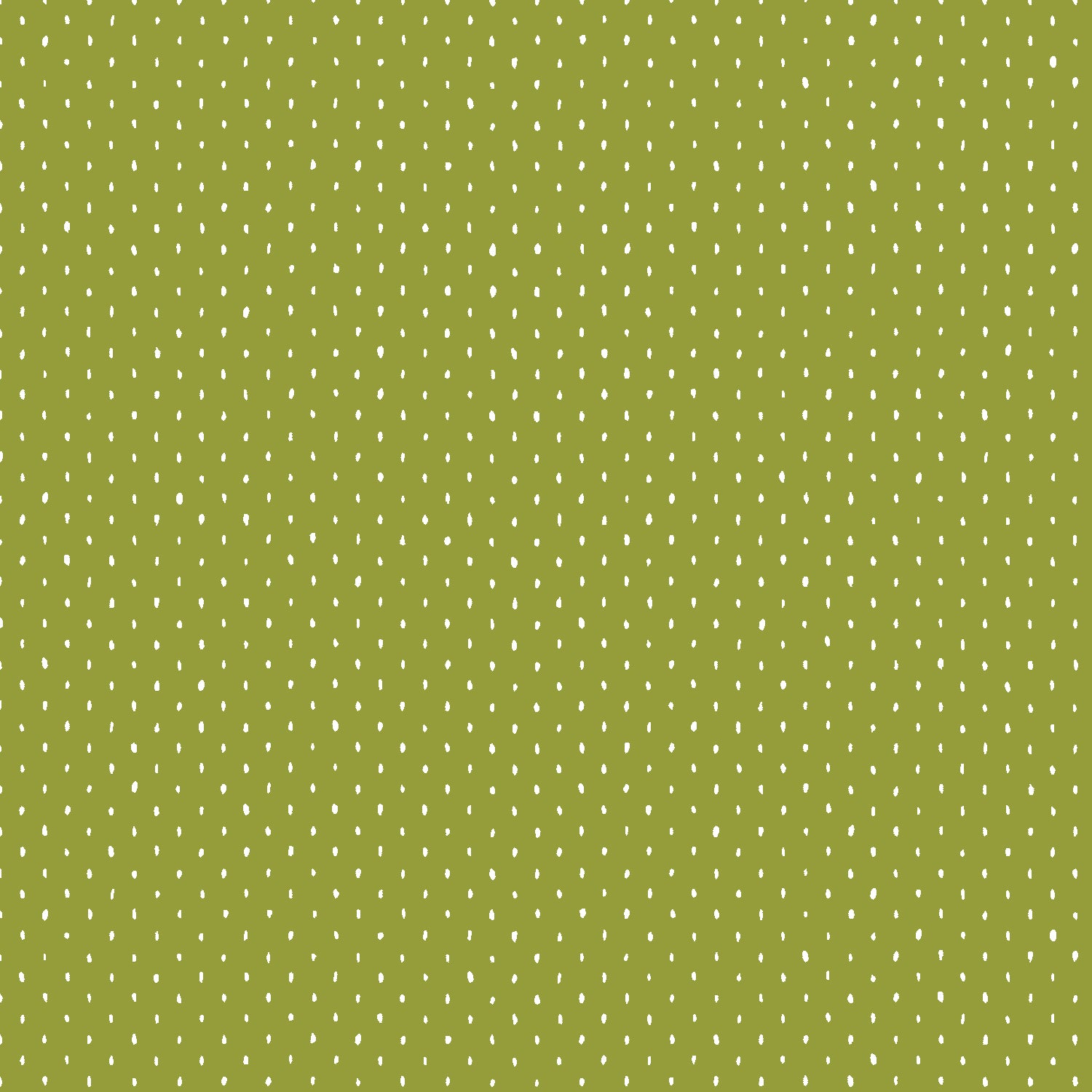 This print is Moss Stitch and Repeat and features white dashes over a moss green background.