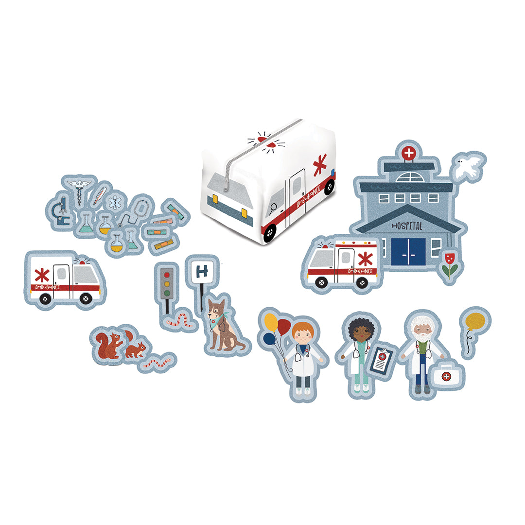 It Takes a Village by Jennifer Long of Sew a Story for Riley Blake Designs is great for quilting, apparel and home decor. This felt panel features medical professionals, firefighters, and police officers.