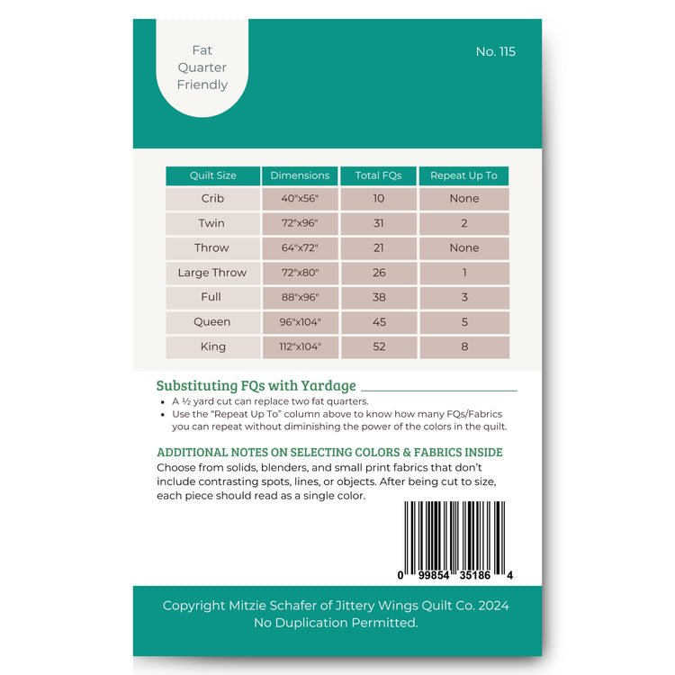 Pattern by Mitzie Schafer for Jittery Wings Quilt Co