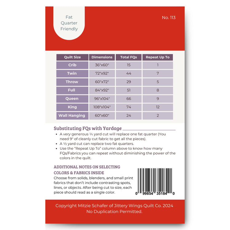 Pattern by Mitzie Schafer for Jittery Wings Quilt Co