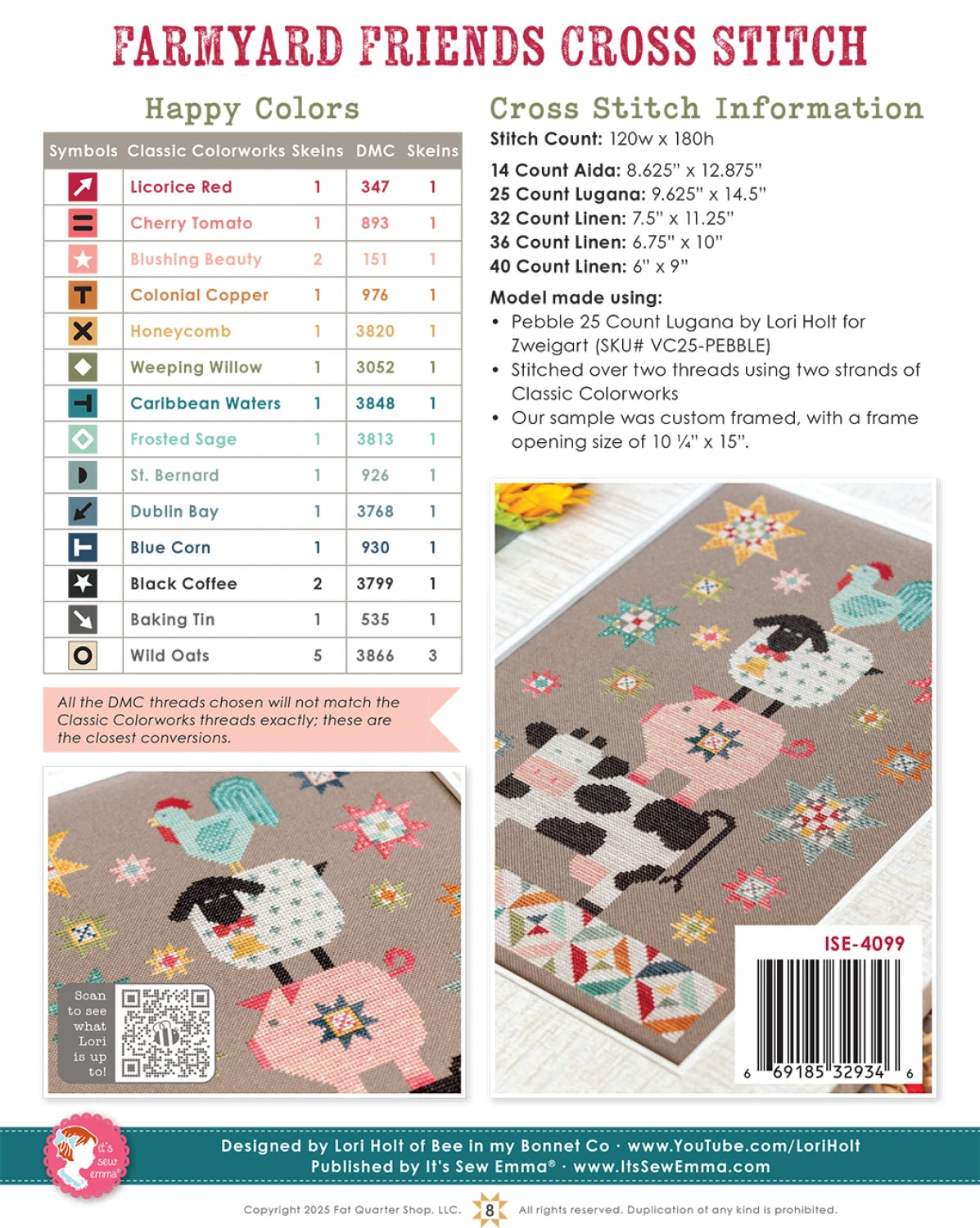 Farmyard Friends Cross Stitch Pattern - Lori Holt for Bee in my Bonnet