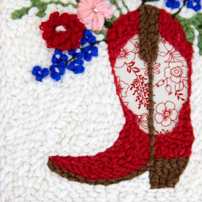 Yee-haw! Let freedom ring with Kimberbell’s Americana Cowgirl design! Our festive Punch Needle Plus kit includes all the supplies you need to completely finish your project, including the tool, preprinted monks cloth, yarn, hoop, rhinestones, applique fabric, and detailed video tutorials. Punch a sassy cowgirl boot, fill with a spray of wildflowers, and add rhinestones for a patriotic pop!