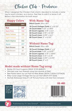 Each month we will release a new pattern in the series. When Lori designed the Chicken Club charts, she decided to include a name tag for each chicken, as a bonus. Feel free to add it or leave it off.