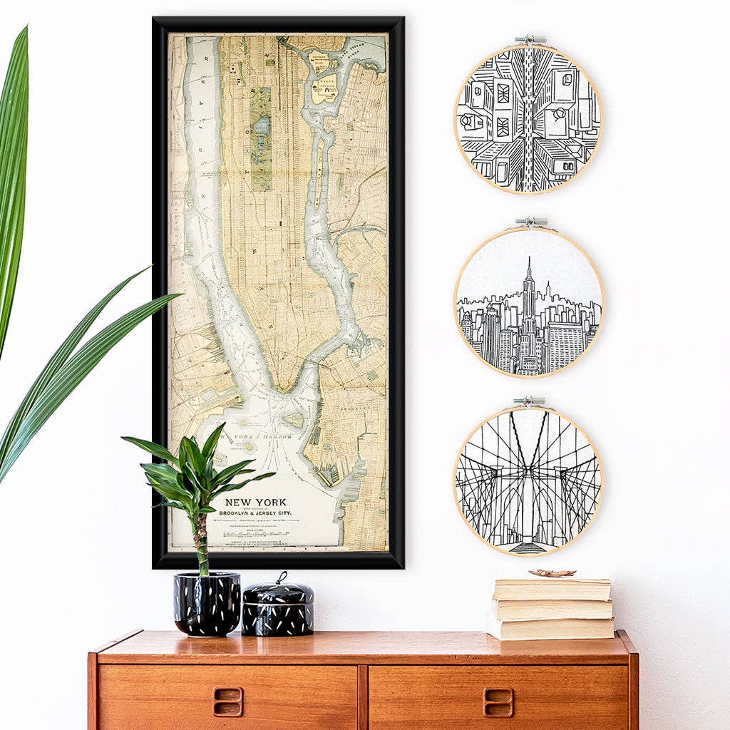 Hand stitch the Top of the Rock, New York City skyline! This popular embroidery kit comes with everything you need to complete your modern needlepoint. Detailed instructions and links to video stitch-tutorials make this kit great for beginners and the experienced alike. Kit includes: • 6" Bamboo Embroidery Hoop • Pre-printed Cotton Fabric • DMC Embroidery Floss • Embroidery Needle • Felt Backing (for a polished finish) • Easy-to-Follow Instructions Dimensions: • Finished Hoop: 6" in diameter