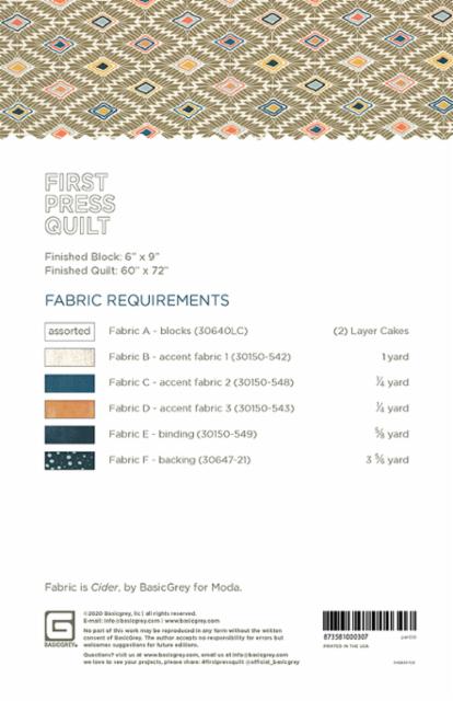 A new pattern by Basic Grey, First Press. FInished size 60"x72"