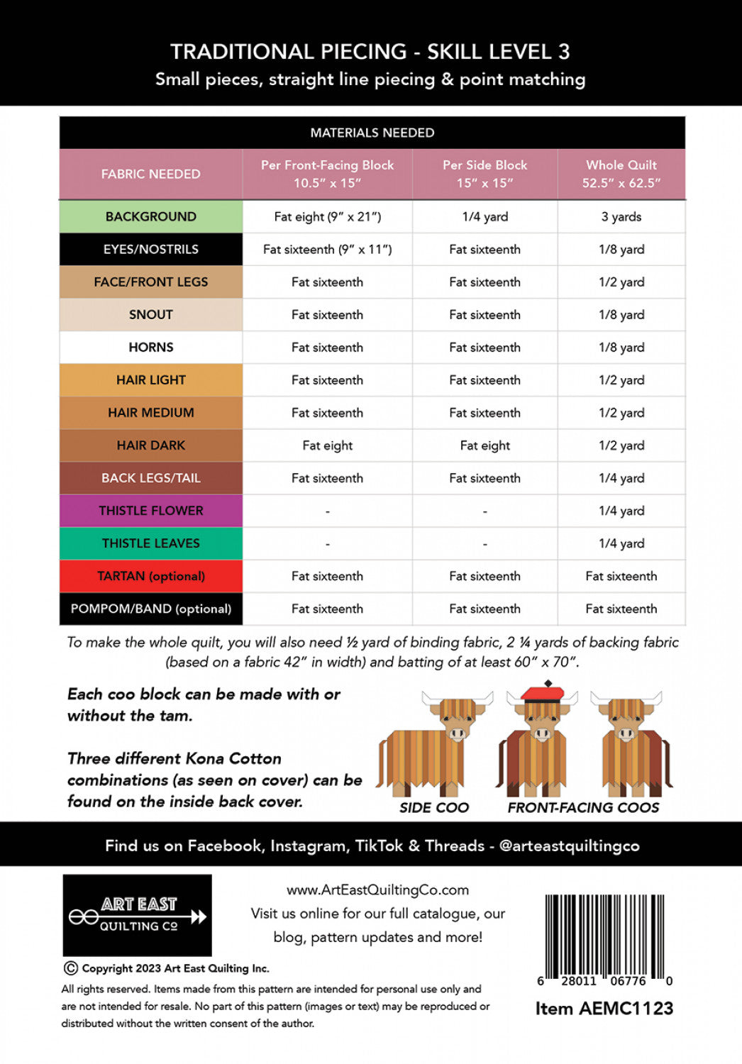 Cattle Call - a Highland Coo Quilt Pattern - Art East Quilting