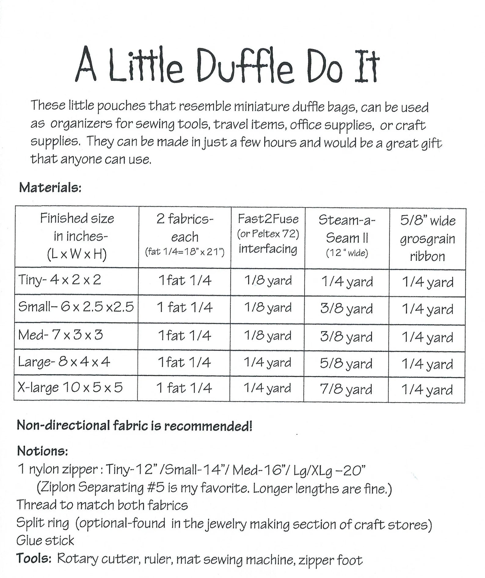 A Little Duffle Do It Pattern - Karen West