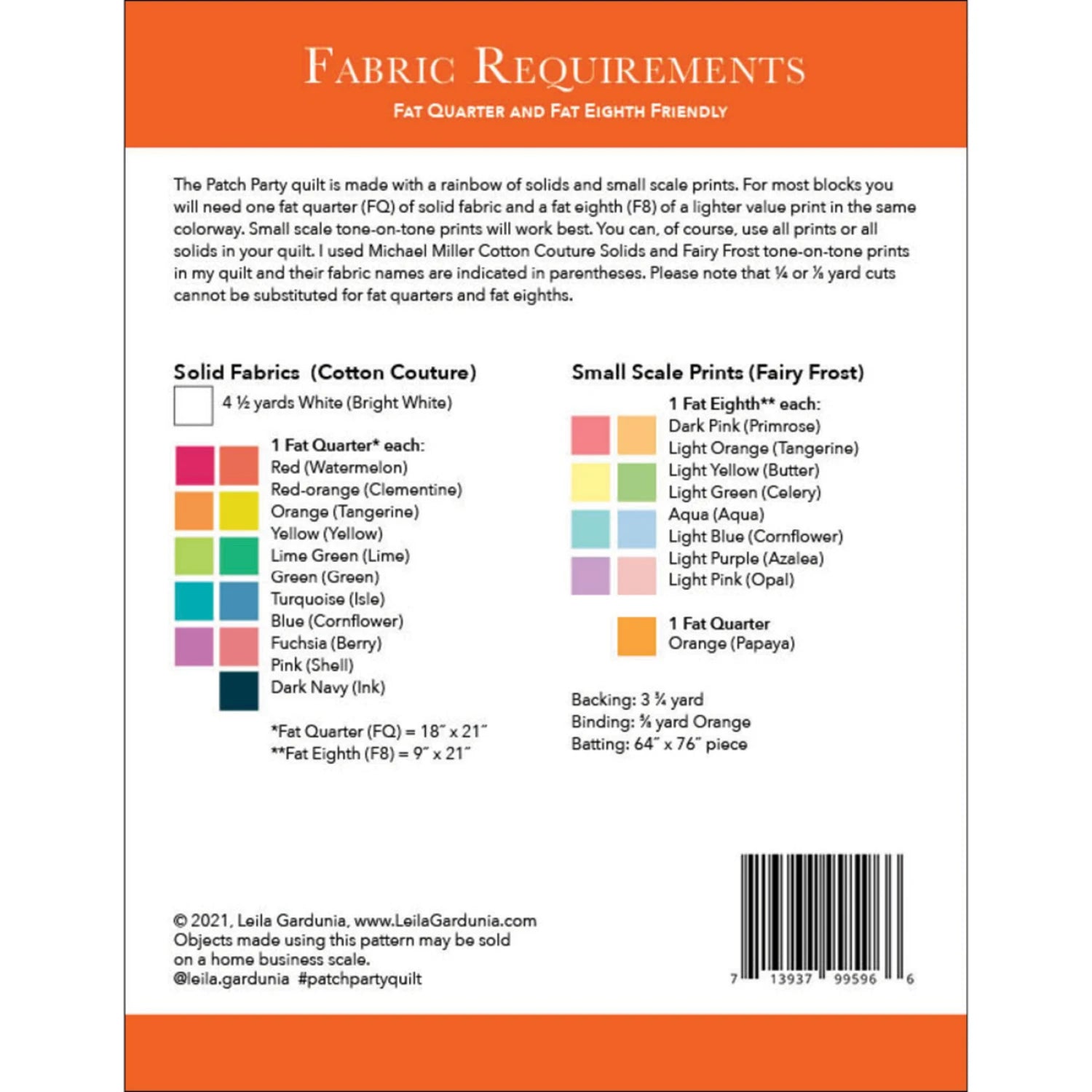 Patch Party is precut-friendly block of the month program. This modern quilt is traditionally pieced and participants make 2 identical quilt blocks most months. The block sets require 1 FQ of a solid fabric and 1 F8 of small-scale print, making it simple to kit. All instructions are contained in an 8.5” x 11” booklet that is handed out at the beginning of the BOM. Finished quilt size: 60” x 72”.