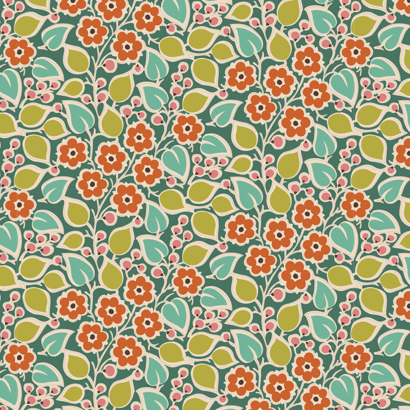 The Pie in the Sky collection is a fresh array of fabrics for spring and summer, with doodle-like flowers giving the designs a naive and effortless feel. The sweet motives and colors have a vintage look that was the point of departure for several quilt designs. Fun fabric names like WillyNilly, Whimsybird, TopsyTurvy and Cloudpie invite you to indulge in a happy, creative sewing escape.