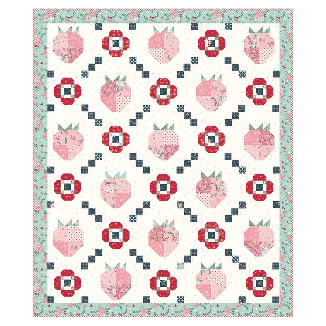 The Berry Market Quilt Boxed Kit includes pattern and fabric for quilt top and binding. Backing not included. Fabric featured is Berry Market by Beverly McCullough of Flamingo Toes. Pattern is also by Beverly McCullough. Finished size is 76" x 90". Kit comes in a solid box with a printed belly band label. Box size is approximately 11" x 12 1/4" x 3 1/2".