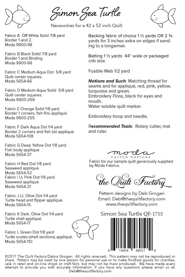 Simon Sea Turtle Quilt Pattern - The Quilt Factory