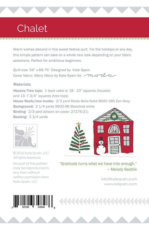 Warm wishes abound in our Chalet quilt sewing pattern. For the holidays or any day, this simple pattern can take on a whole new look depending on your fabric selections. Includes a free quilt planning coloring page.