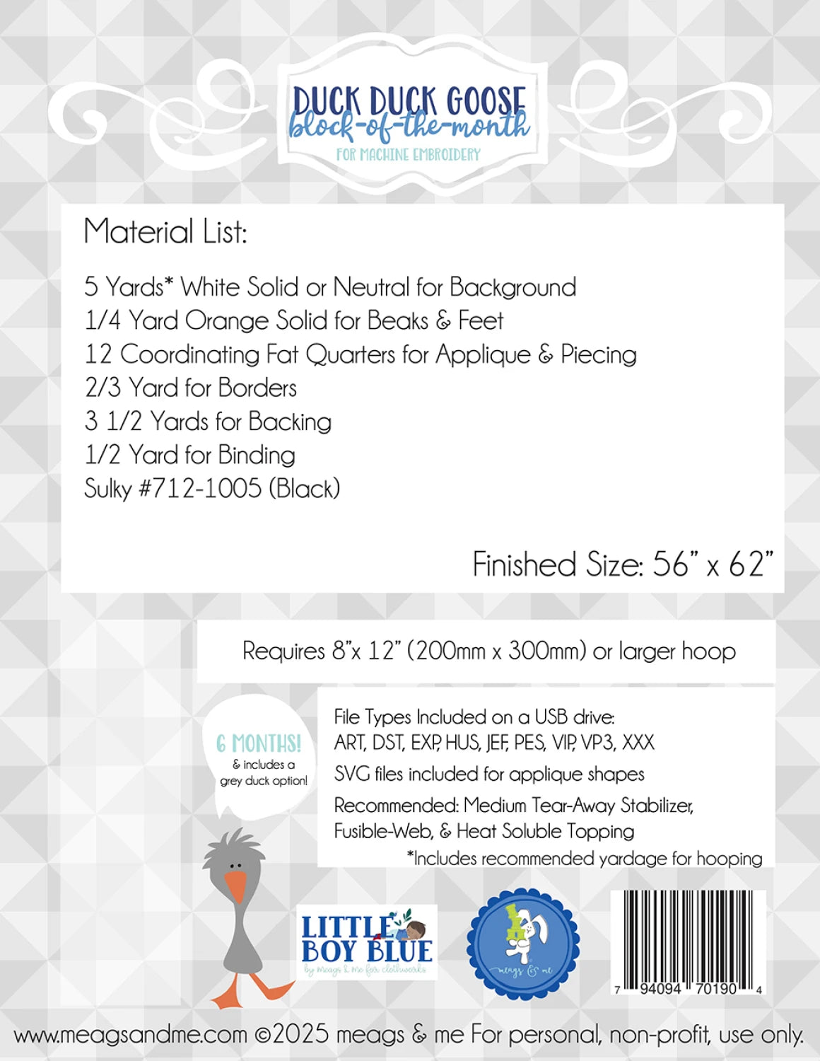 Duck Duck Goose Block of the Month USB for Machine Embroidery