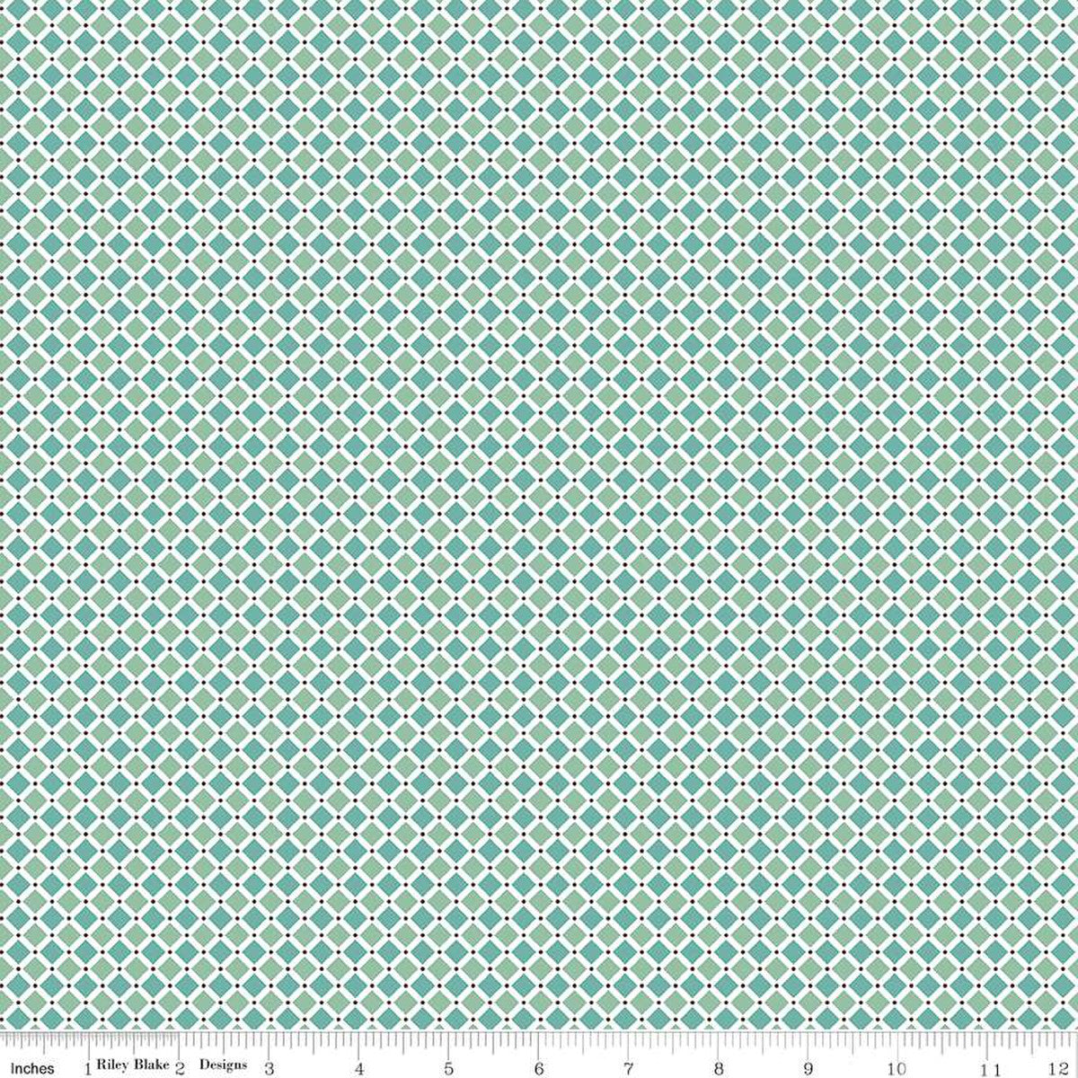 Bee Plaids by Lori Holt of Bee in my Bonnet for Riley Blake Designs is great for quilting, apparel and home decor. This print features a diagonal grid with colored squares and pin dots.