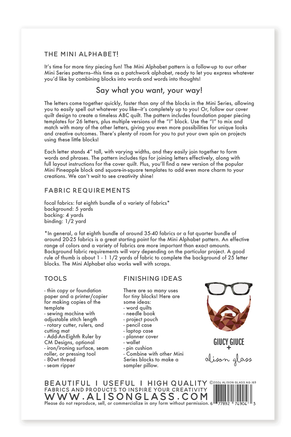 Each letter stands 4” tall, with varying widths, and they easily join together to form words and phrases. The pattern includes tips for joining letters effectively, along with full layout instructions for the cover quilt. Plus, you’ll find a new version of the popular Mini Pineapple block and square-in-square templates to add even more charm to your creations. We can’t wait to see creativity shine!