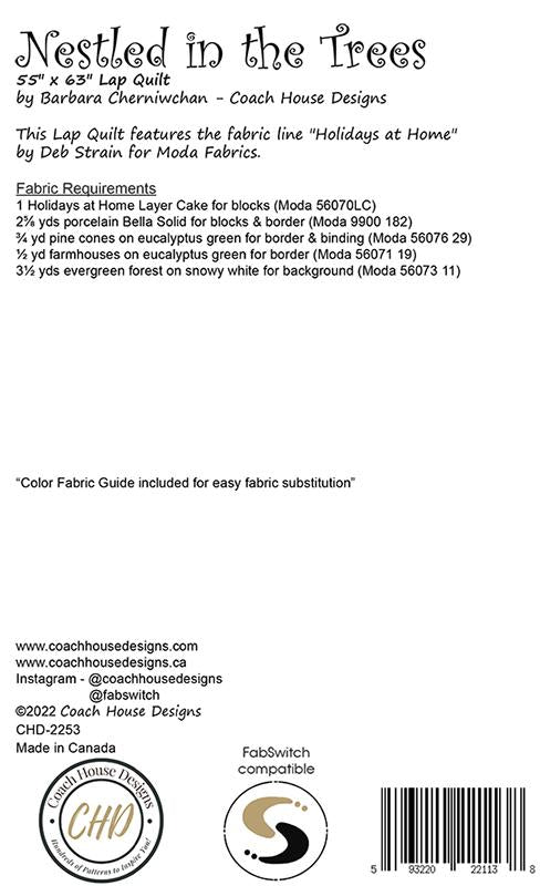 Nestled in the Trees Quilt Pattern showcases cute cabins among the trees.