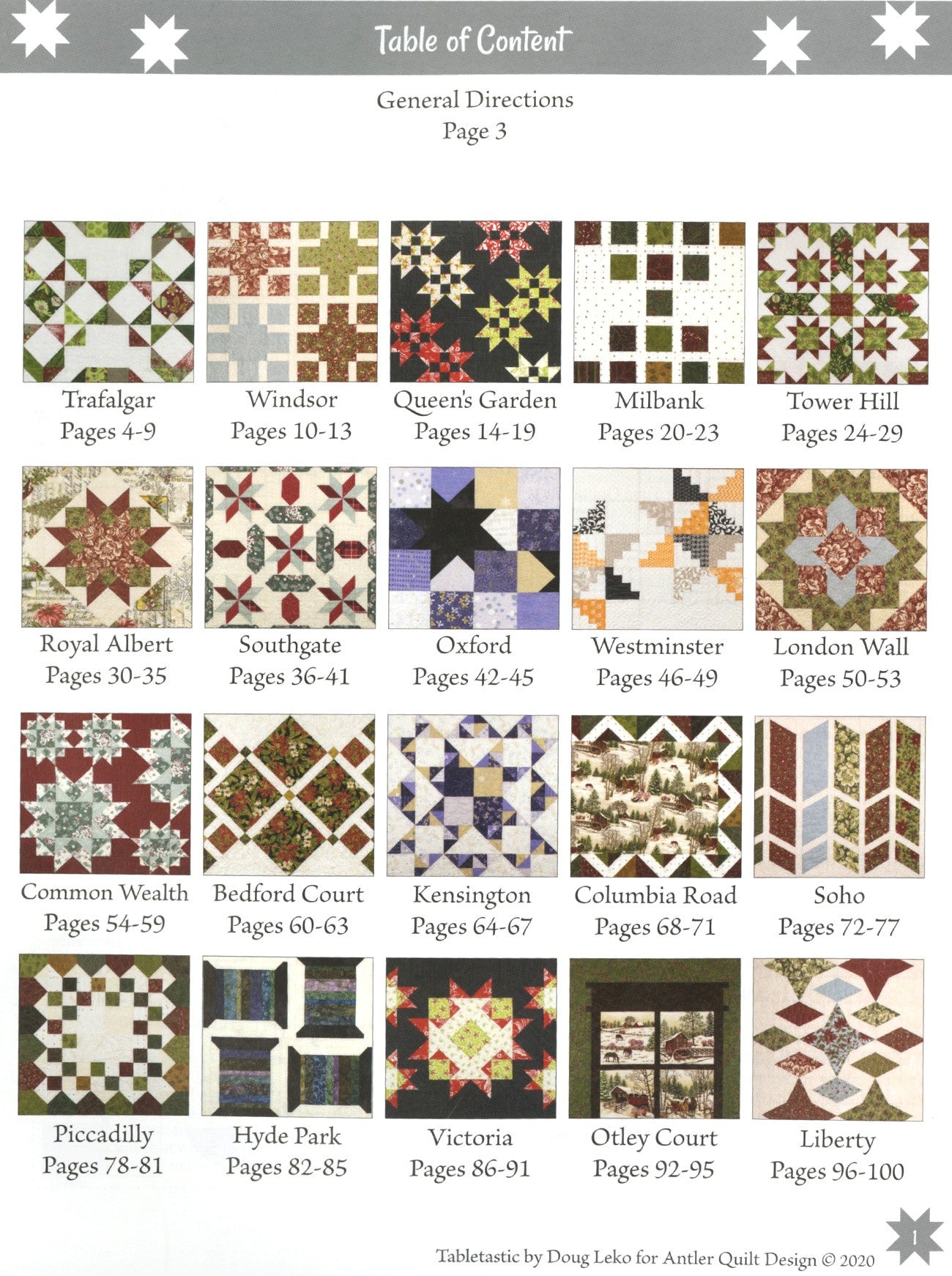 20 new Table Runners and Toppers patterns - 14 Table Runner & 6 Toppers Each Project shown in 2 colorways! Great for using up your Precuts & Scraps! Full Color, 100 Pages! The book also comes with a metal spiral binding, it will lay nice and flat while you use it.