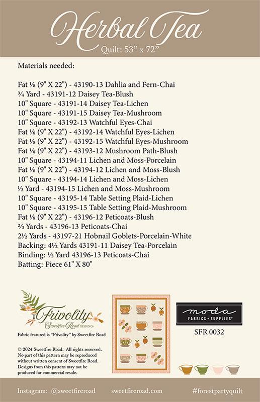 Quilt Pattern featuring tea cups and berries! Project Size: 53" x 72".